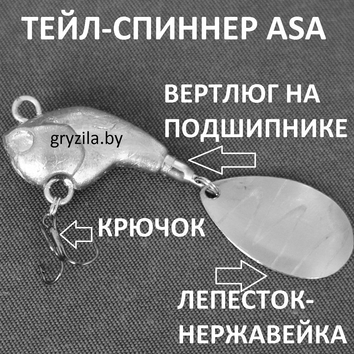 ТЕЙЛ-СПИННЕР 27 (±5%) гр., лепесток-нержавейка, вертлюг с подшипником (вес неокрашенного тейл-спиннера с крючком и лепестком, ) )