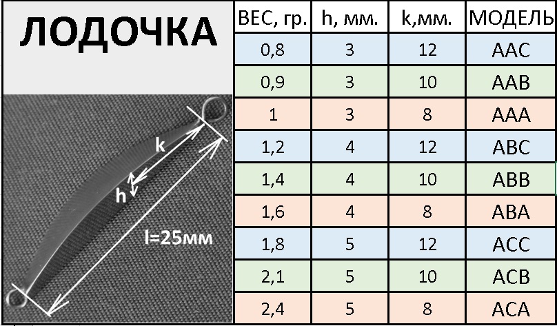 ЛОДОЧКА 1,8 (±5%) гр. длина L-25 мм., h=5, K=12